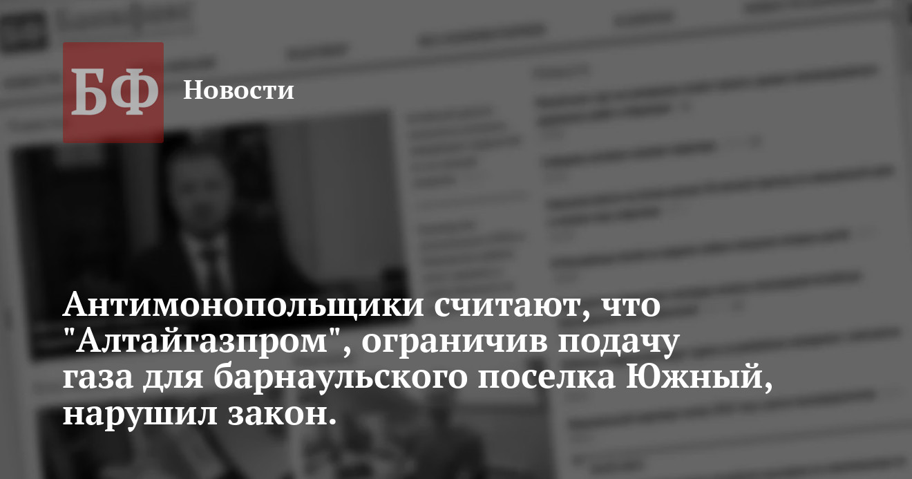 Управление ФАС по Алтайскому краю обязало ОАО «Алтайгазпром»