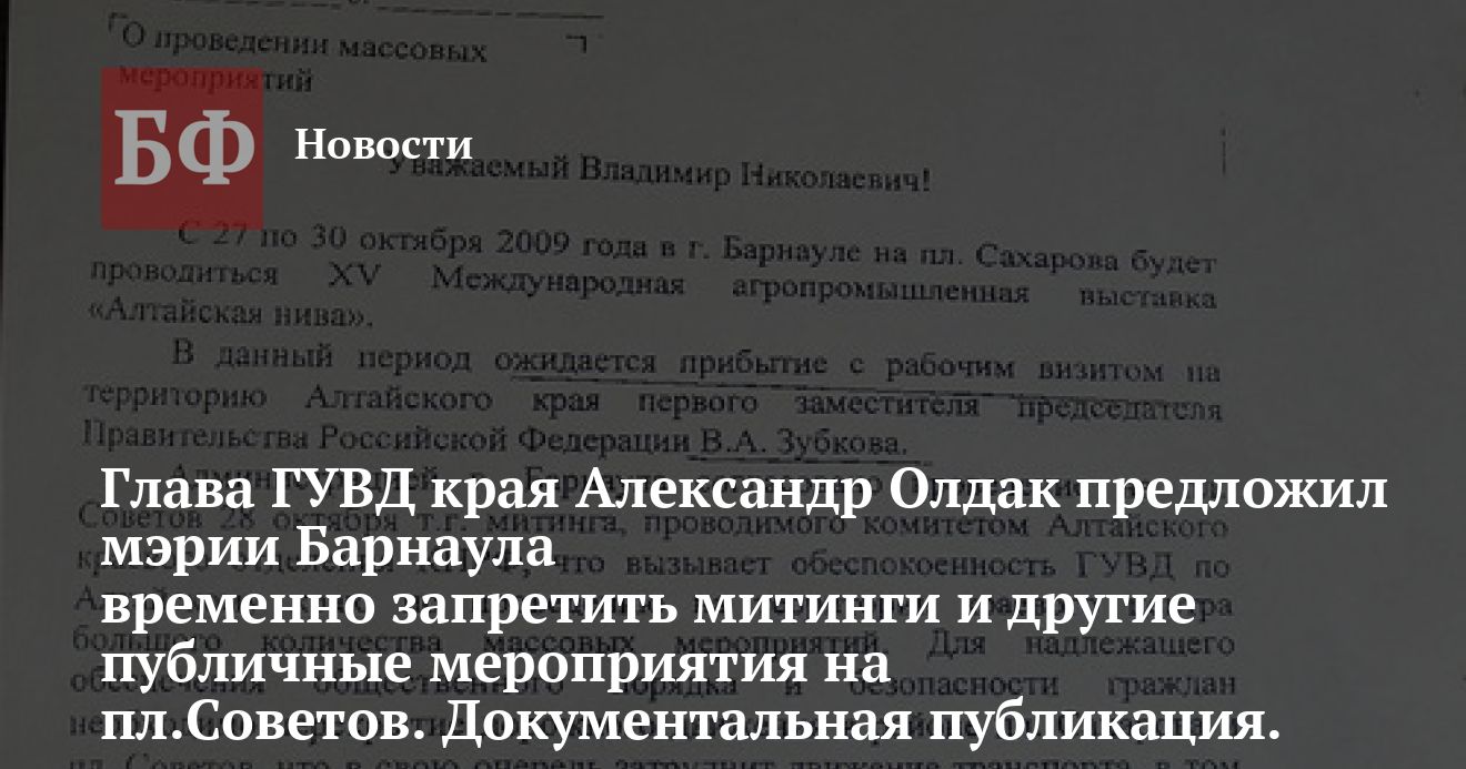 вице-премьера РФ Виктора Зубкова мэрия города перенаправила в алтайский крайком КПРФ просьбу начальника краевого ГУВД Александра