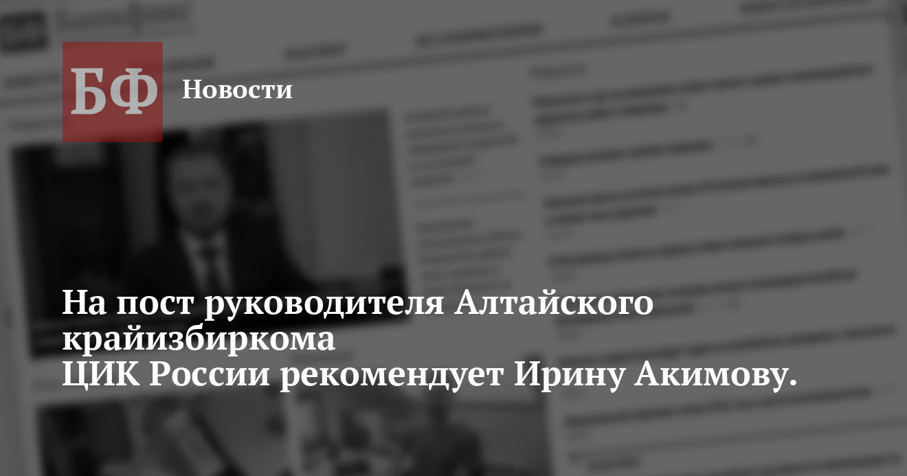 Избирательной комиссии Алтайского края. Как сообщили в пресс-службе федерального ведомства, ЦИК России на этот пост