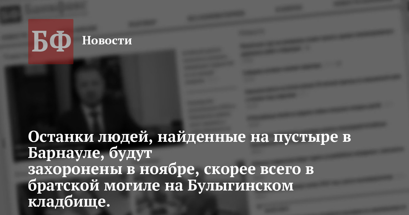 Найденные 10 октября на пустыре в Барнауле человеческие останки будут захоронены в конце ноября. Об этом «ПолитСибРу» сообщил заведующий кафедрой