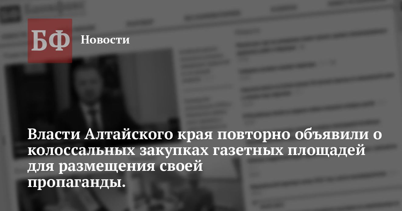 Алтайского края (включающий 80 лотов), принявшей решение о закупке на 2010 г. колоссального объема площадей в печатных СМИ