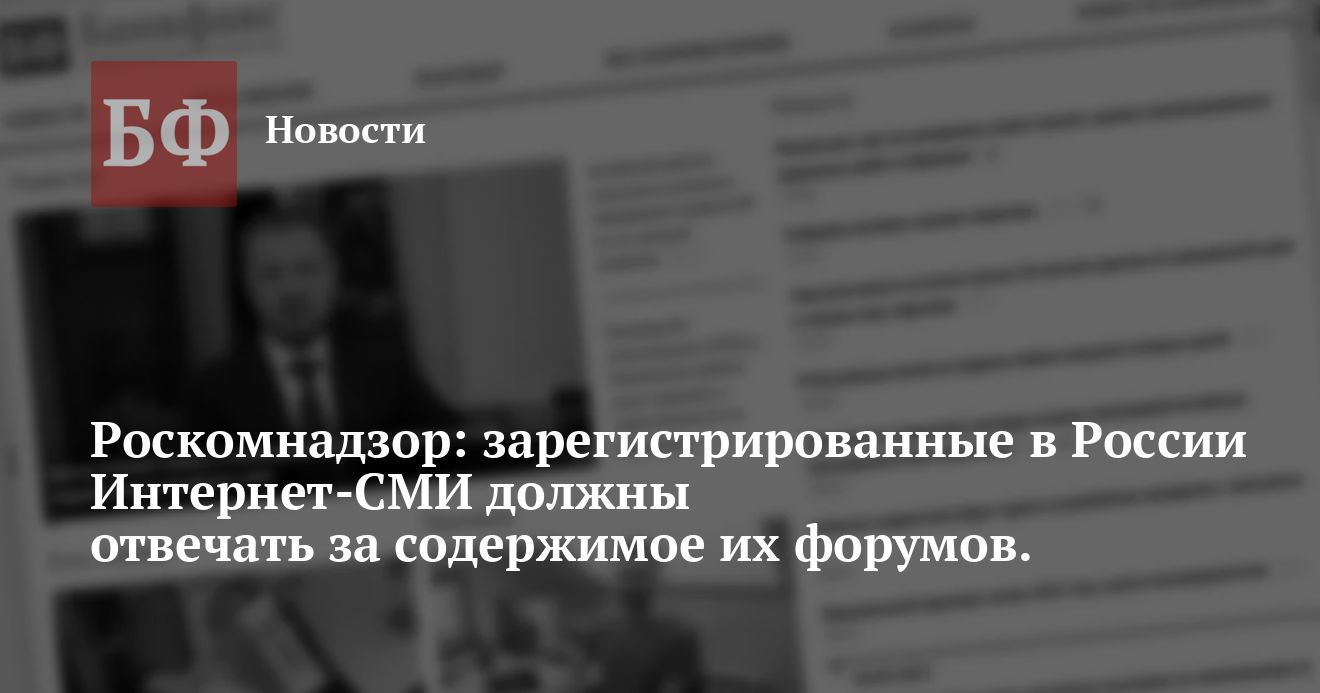 Руководитель правительственного ведомства коснулся вопроса о ответственности зарегистрированного в России Интернет-СМИ за записи на своем форуме. Сославшись на то, что представители