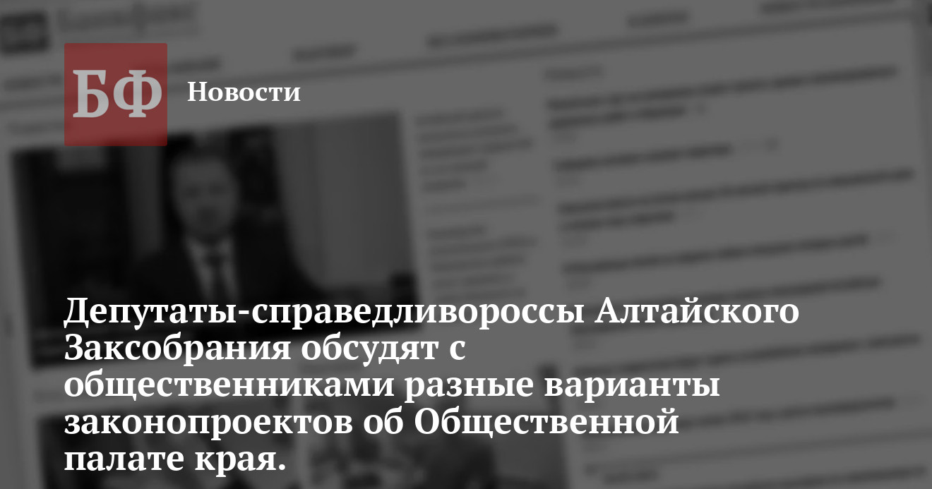 11 декабря состоится заседание фракции «Справедливой России» в Алтайском краевом Заксобрании, в котором примут участие