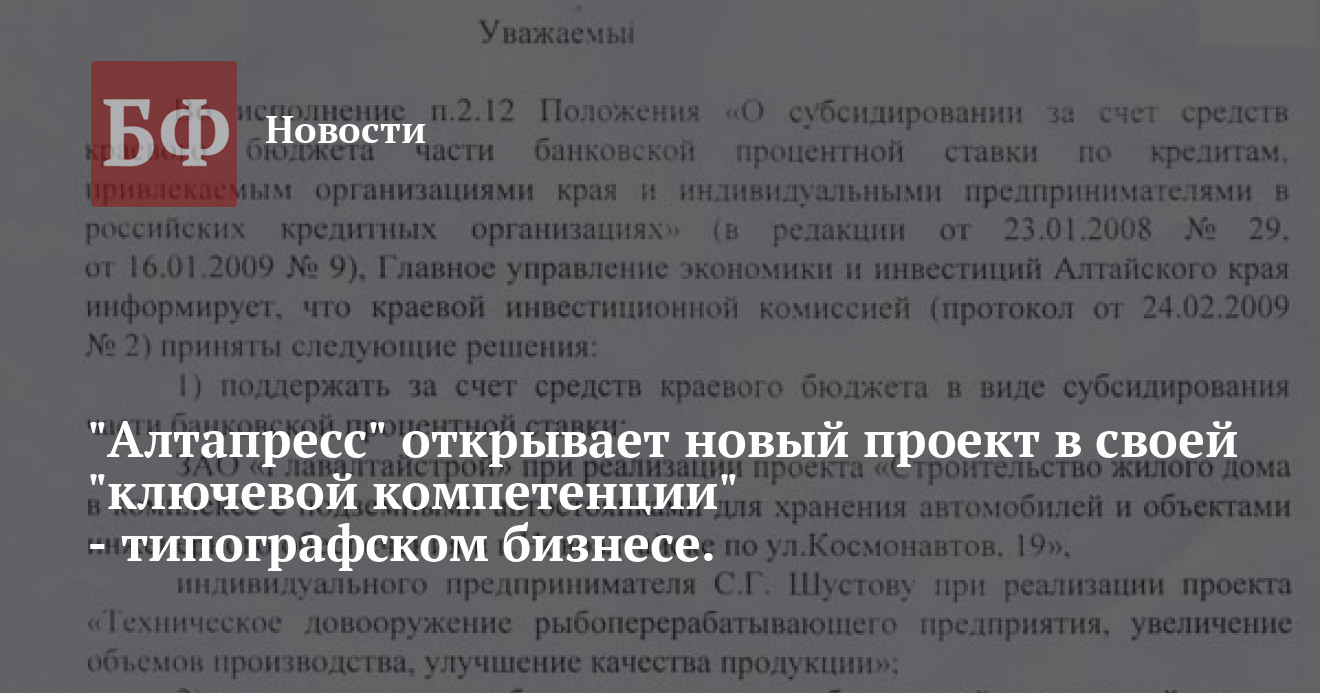 полиграфической отрасли Алтайского края, отмечает официальный
