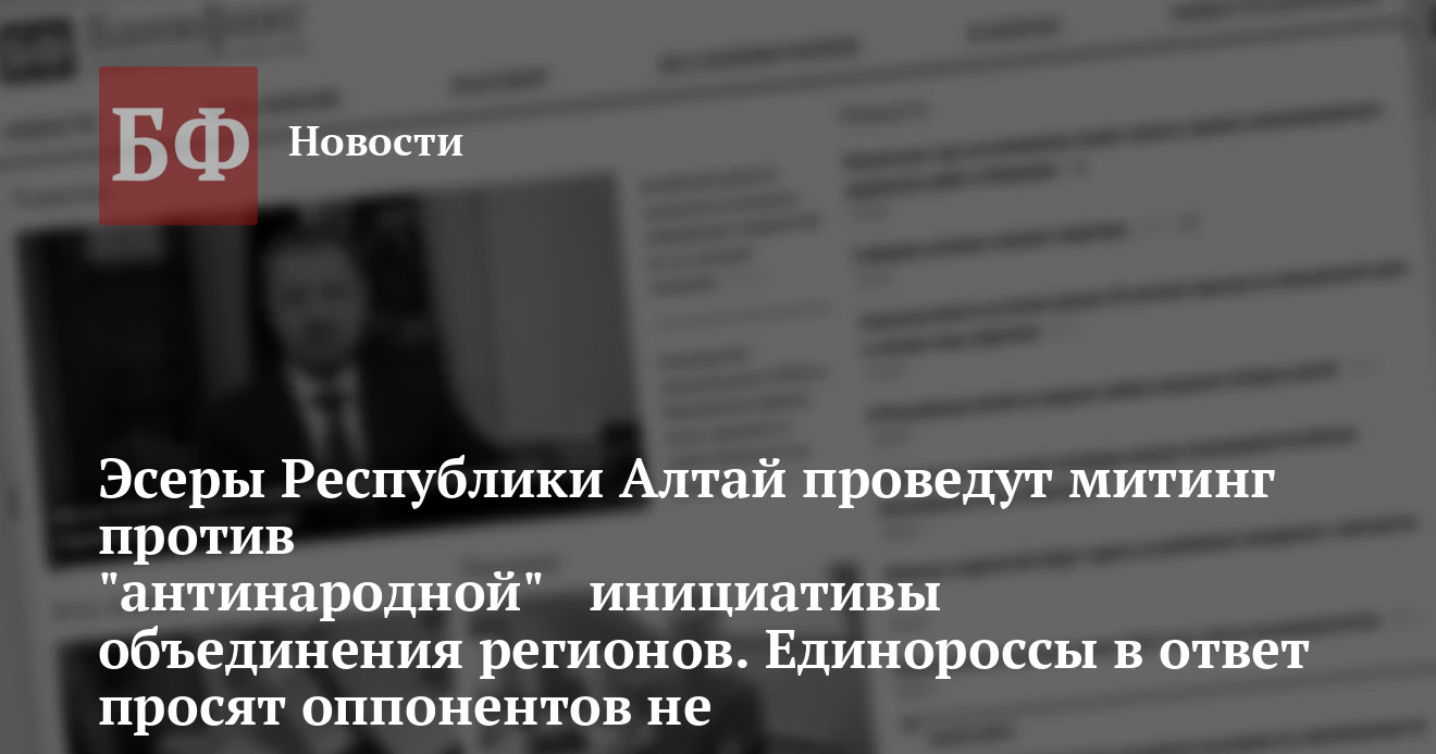 против объединения регионов. Кроме того, сегодня же справедливороссы подадут заявку в мэрию Горно-Алтайска на проведения митинга против объединения Республики Алтай с Алтайским краем. Дата мероприятия пока уточняется. «В акции мы планируем задействовать как можно больше человек. Мы также