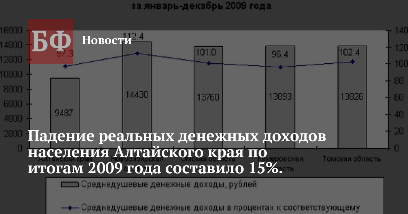 доходах населения Алтайского края в январе-декабре 2009 года. По итогам года этот показатель составил 9 487 рублей (в Новосибирской