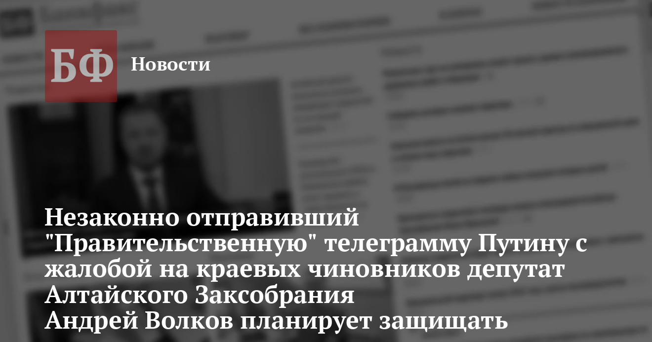 прямо на имя председателя правительства РФ Владимира Путина, а в ней нелестно отозвался о краевых чиновниках и контролируемых