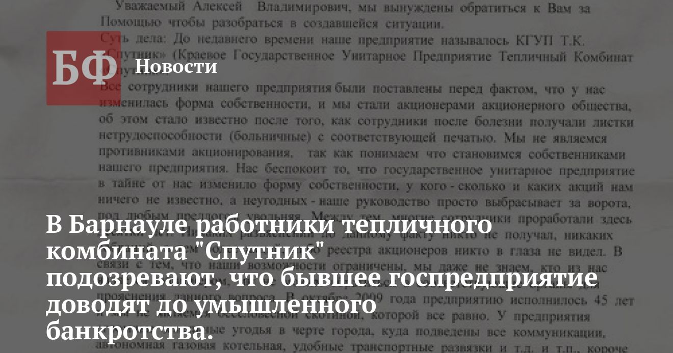 подозревают, что бывшее госпредприятие доводят до умышленного