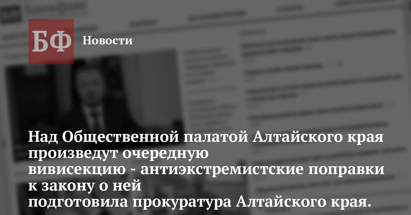 приведения Закона края «Об Общественной палате Алтайского края» в соответствие с действующим российским законодательством. Тем не менее, каких-либо норм в федеральном законодательстве, требующих
