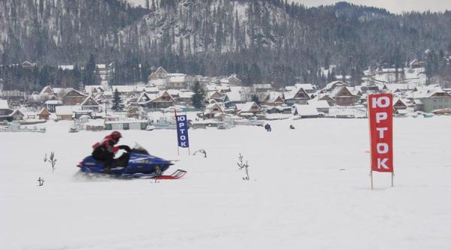 Первый день соревнований. Snow racing — парные гонки по льду Телецкого озера.