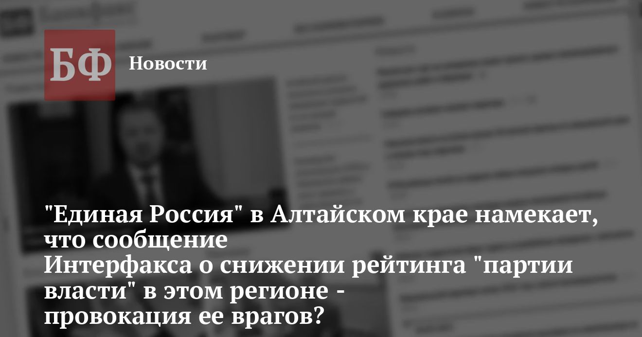 партийному лидеру заявление о снижении рейтинга «Единой России» в Алтайском крае на 4%.