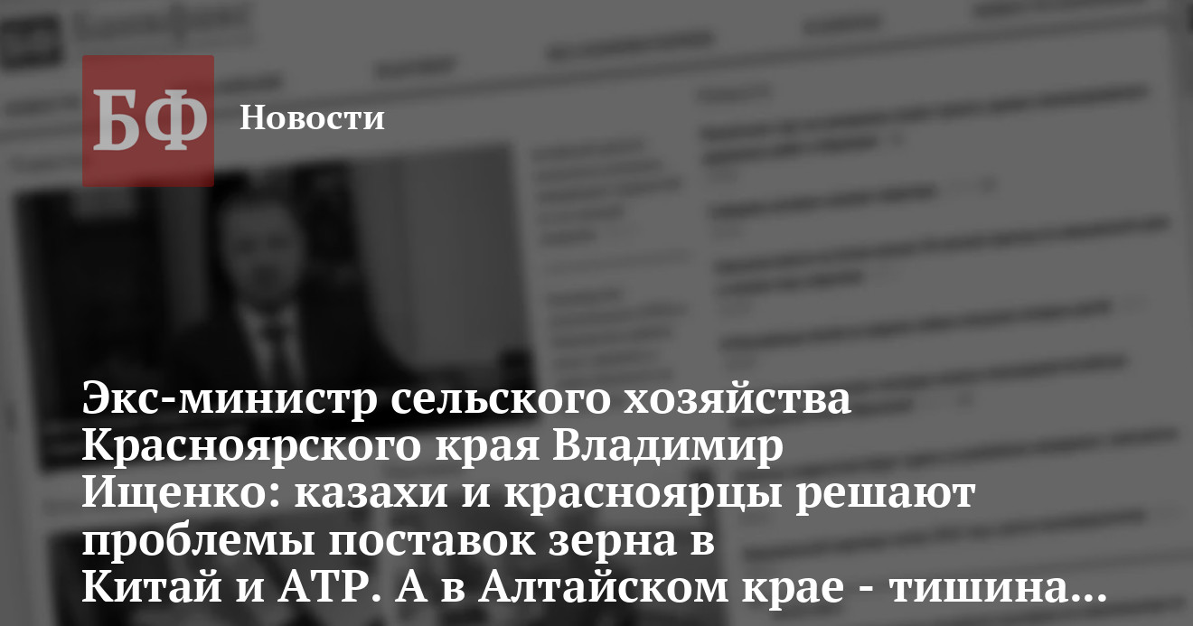 В этой связи меня несколько удивляет ситуация на Алтае. Можно подумать, не здесь находится центр зернового кризиса Сибири, не здесь падение цен на зерно приняло самые острые формы.