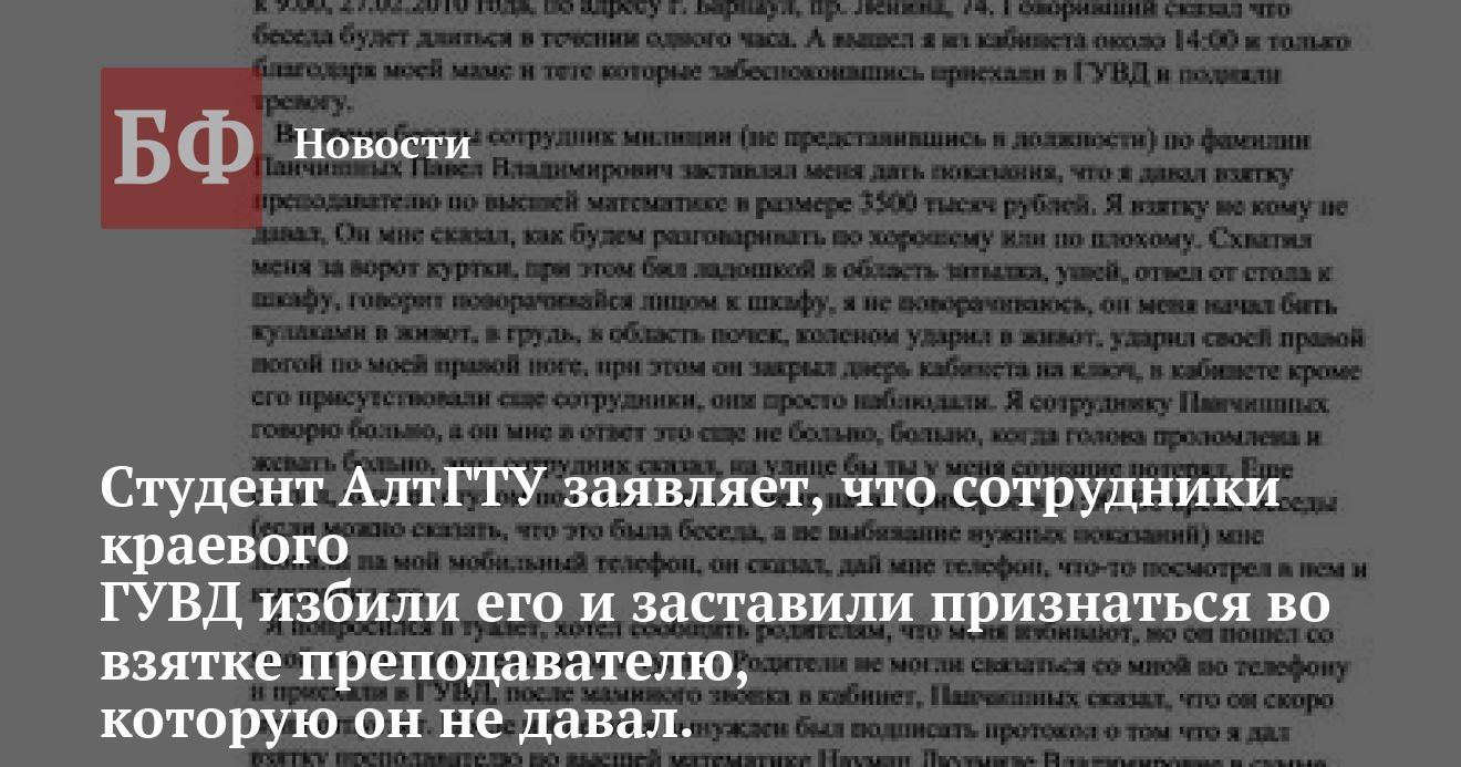 проверку в связи с заявлением студента АлтГТУ им. И.И.Ползунова