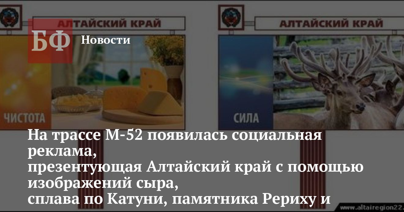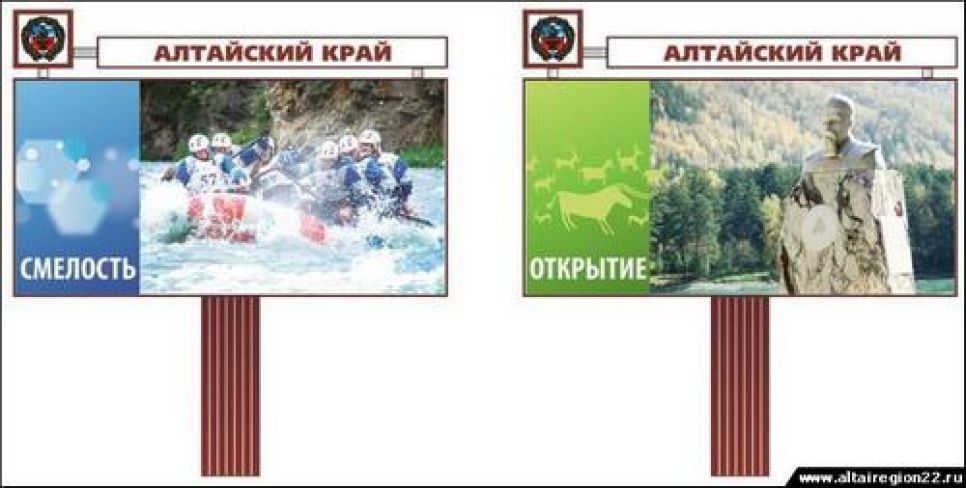 Напомним, краевые власти ещё в начале 2009 года задались целью продвижения региональных продуктов и рекреационных ресурсов на российский рынок. В этой связи был разработан проект рекламной кампании, которая предусматривает запуск рекламных видеороликов и размещение на федеральной трассе М-52 щитов, популяризирующих продукцию, природу, историю и героев Алтая.