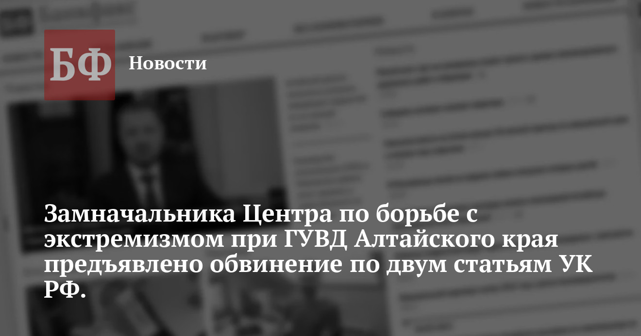 Замначальника Центра по борьбе с экстремизмом при ГУВД Алтайского края предъявлено обвинение по двум статьям УК РФ.