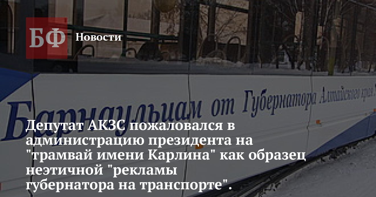 На обращение Игоря Вольфсона к губернатору Александру Карлину и его заместителю Борису Ларину с предложением убрать надпись «Барнаульцам от Губернатора Алтайского края» с экспериментального трамвая, по словам депутата, ответа не последовало. Теперь он намерен привлечь краевых чиновников к ответственности за нарушение Федерального закона «О порядке рассмотрения обращений граждан Российской Федерации».