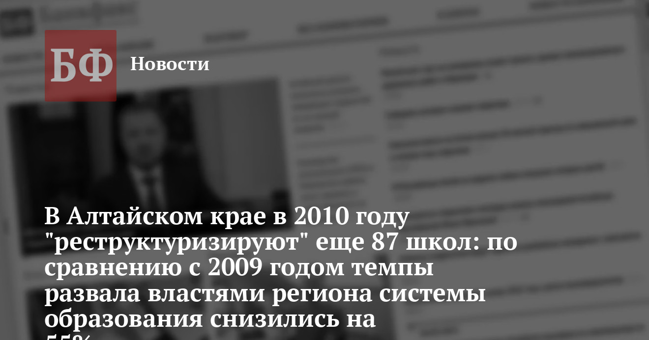учреждениям. В 2010 в плане только пять школ в Барнауле и одна в Рубцовске. Здесь тоже есть объективные причины: там, где,