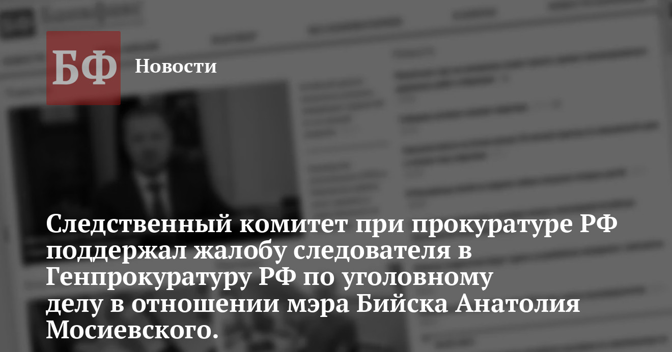 следователя по особо важным делам краевого СУ СКП на постановление крайпрокурора о возвращении уголовного дела в отношении главы администрации Бийска Анатолия Мосиевского для