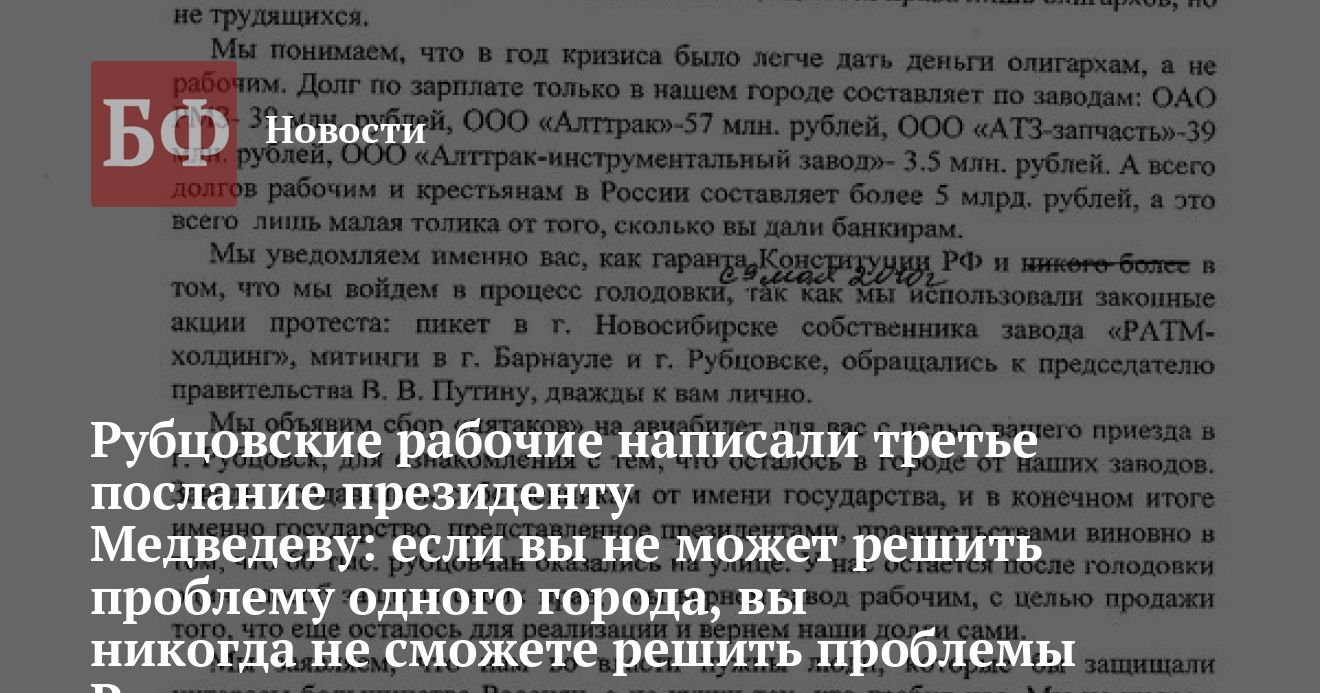 Рубцовские рабочие написали третье послание президенту