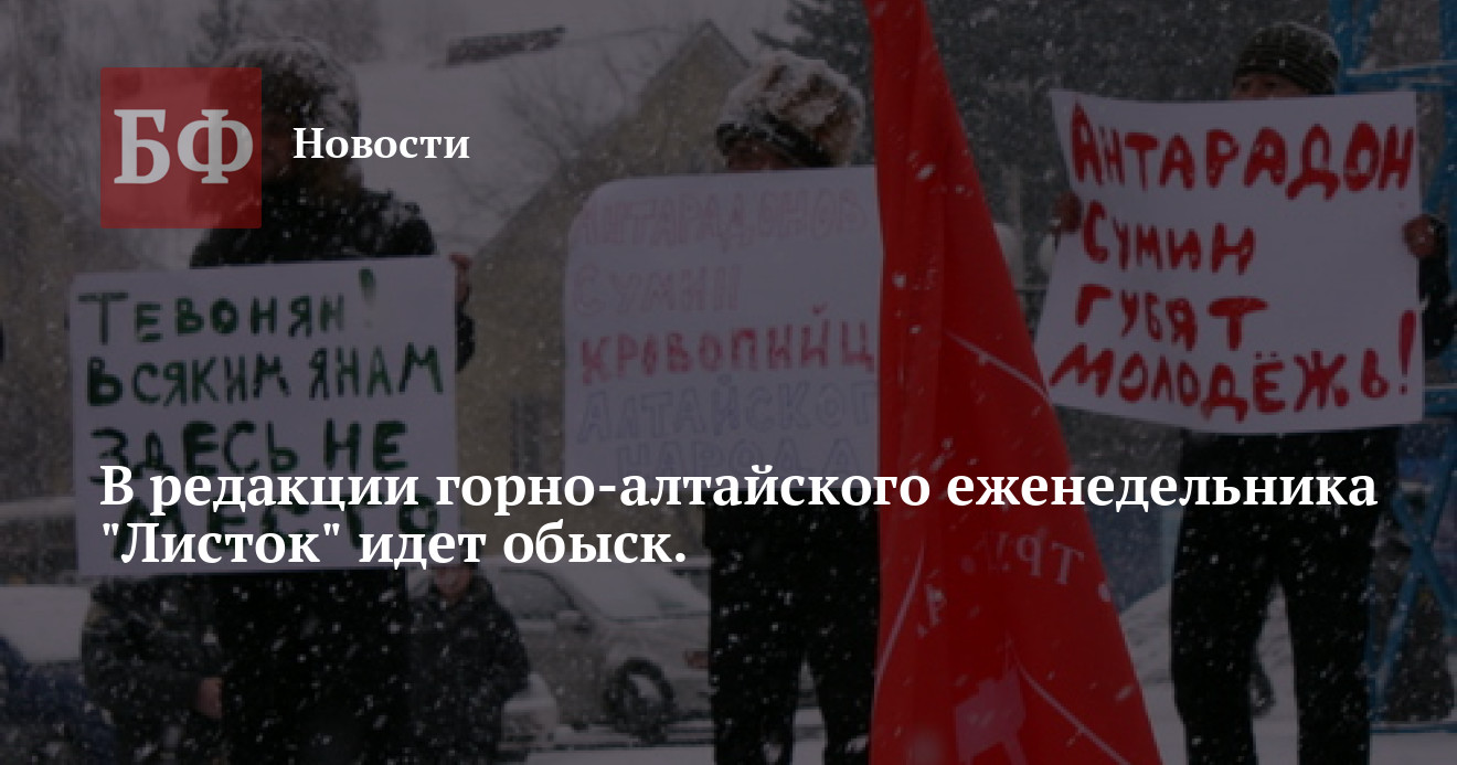 13 мая с 12:00 и по настоящий момент в редакции издаваемого в Горно-Алтайске еженедельника «Листок» идет обыск. Об этом ИА