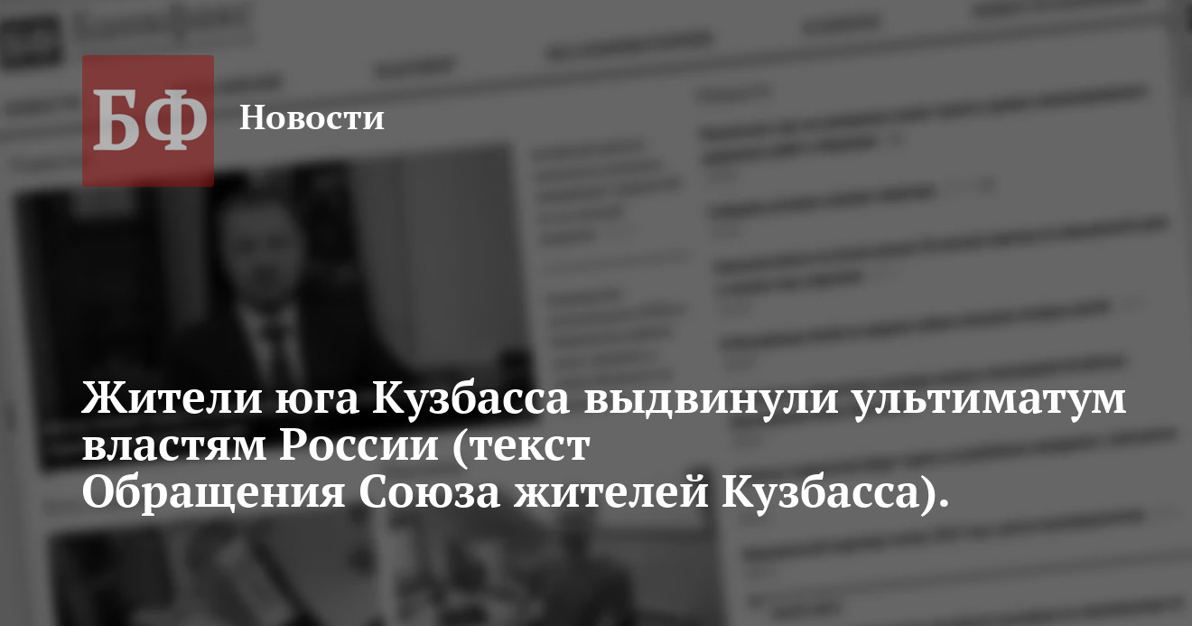 Открытое обращение Союза жителей Кузбасса к Президенту, народу России и жителям Кузбасса