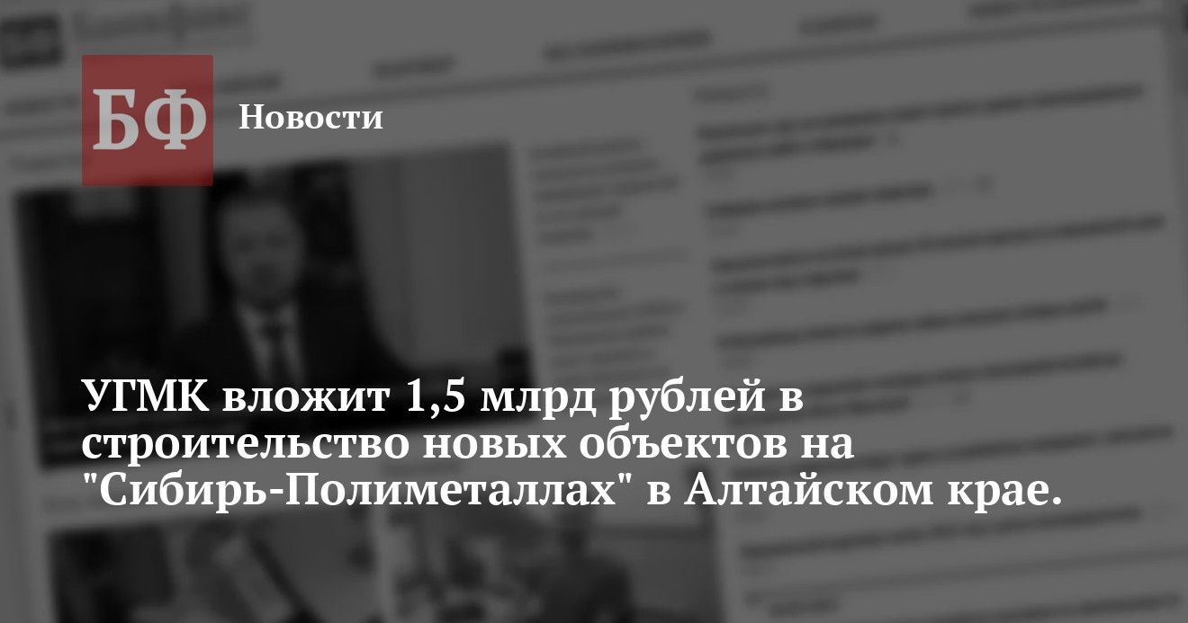 В 2010 году УГМК намерена инвестировать 1,5 млрд рублей в строительство новых объектов на ОАО «Сибирь-Полиметаллы», которое