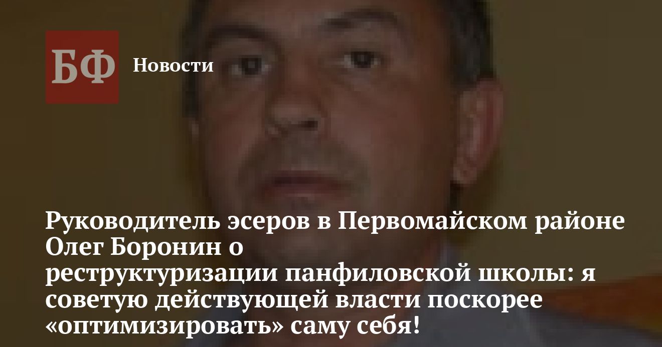 Руководитель эсеров в Первомайском районе Олег Боронин о реструктуризации панфиловской школы: я советую действующей власти поскорее «оптимизировать» саму себя!