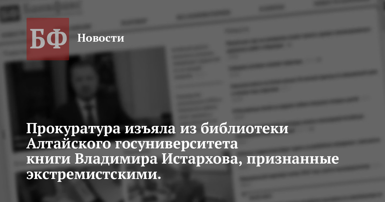 Прокуратура изъяла из библиотеки Алтайского госуниверситета книги Владимира Истархова, признанные экстремистскими.