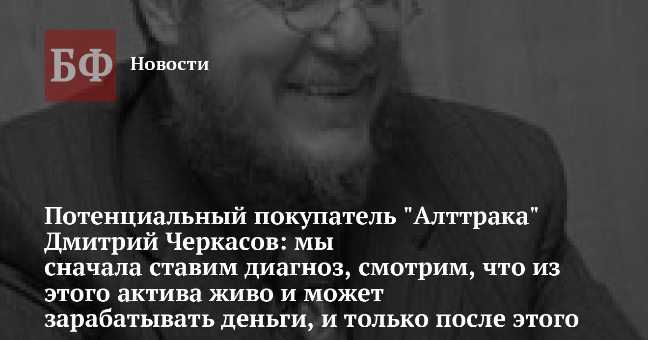 «Мы сначала ставим диагноз, — рассказывает Дмитрий Черкасов (врач по образованию — прим.Сhel.ru). — Смотрим, что из этого актива живо и может зарабатывать деньги. Только после этого определяется цена сделки». С оценкой стоимости «Алттрака», озвученной в СМИ, -$ 3 млн — бизнесмен не согласен. По его словам, она значительно выше. Сумма складывается не из долгов предприятия, а из того, сколько оно сможет зарабатывать.