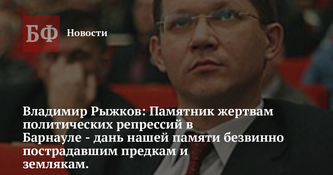 Владимир Рыжков: Памятник жертвам политических репрессий в Барнауле — дань нашей памяти безвинно пострадавшим предкам и землякам.