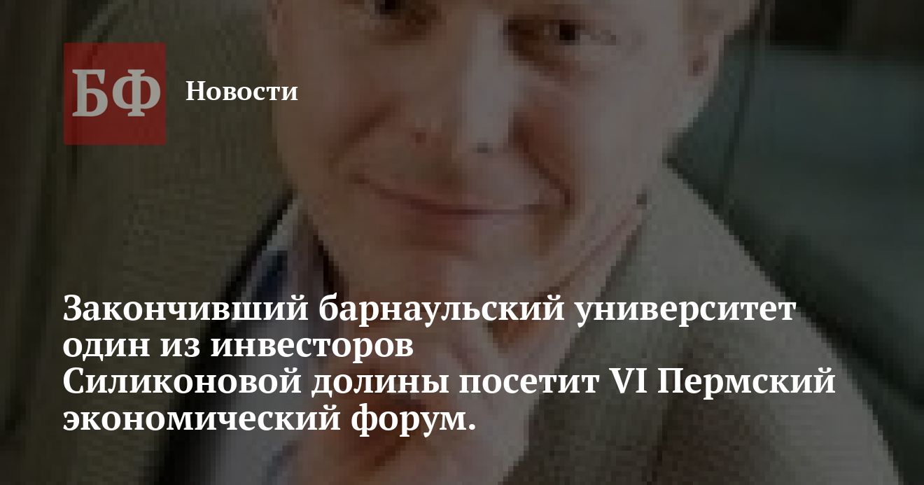 Закончивший барнаульский университет один из инвесторов Силиконовой долины посетит VI Пермский экономический форум.
