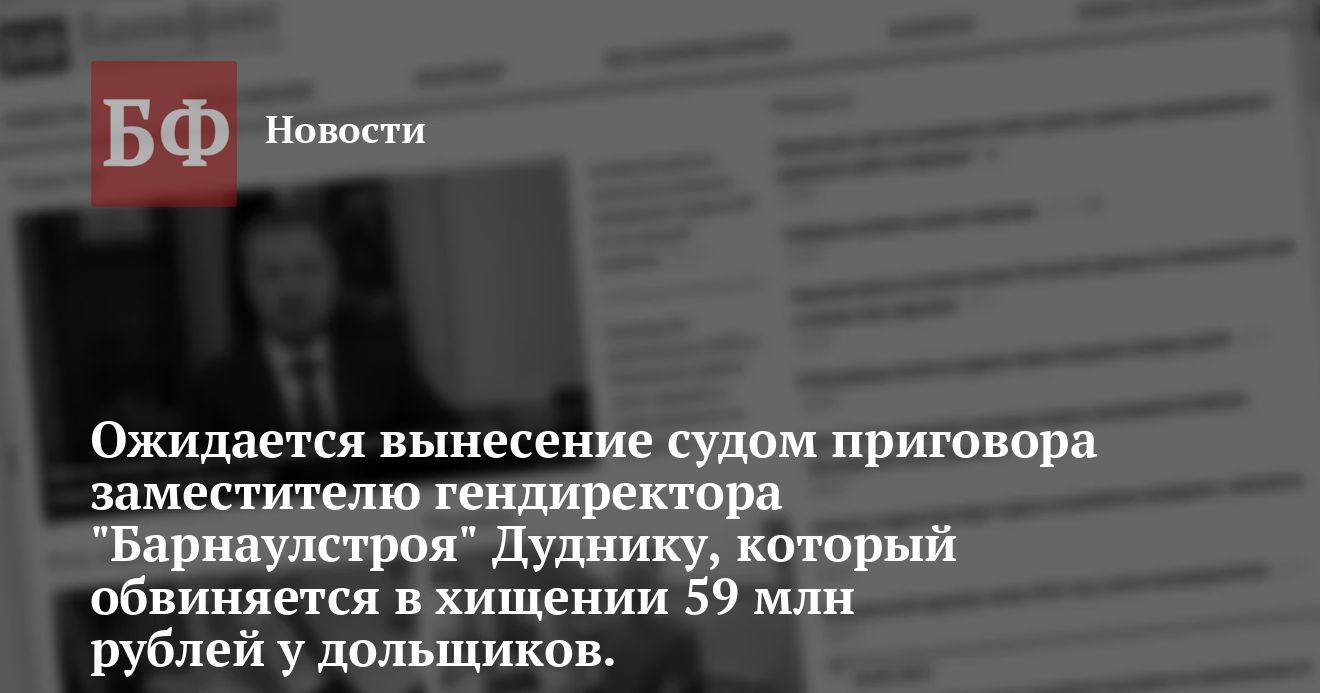 заместителя генерального директора ООО «Барнаулстрой» Ивана Дудника,