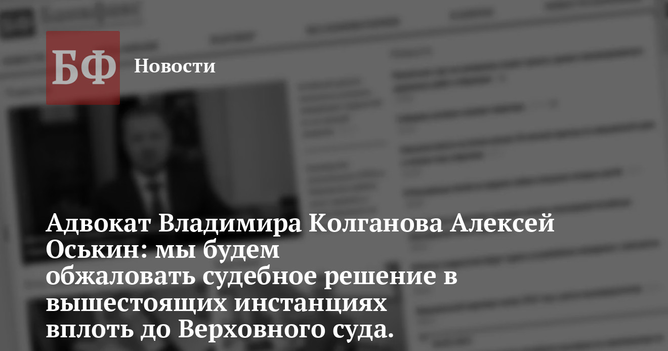 Как сообщил адвокат Владимира Колганова Алексей Оськин, представители истца