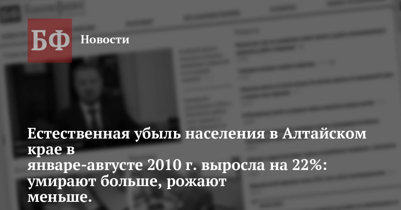 В итоге естественная убыль населения Алтайского края в январе-августе составила 4059 человек. Это на 729