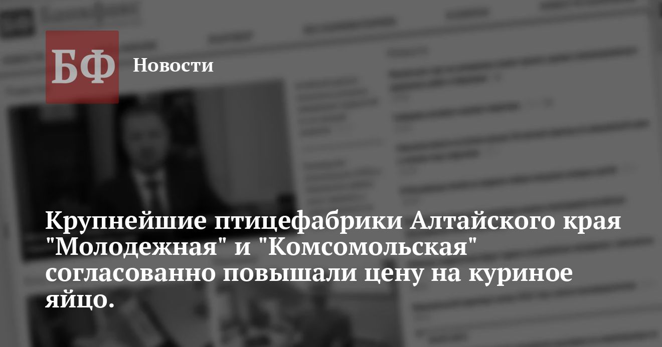 Крупнейшие птицефабрики Алтайского края «Молодежная» и «Комсомольская» согласованно повышали цену на куриное яйцо.