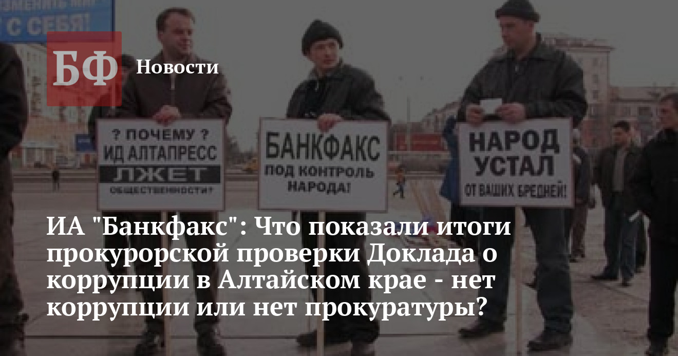 ИА «Банкфакс»: Что показали итоги прокурорской проверки Доклада о коррупции в Алтайском крае — нет коррупции или нет прокуратуры?