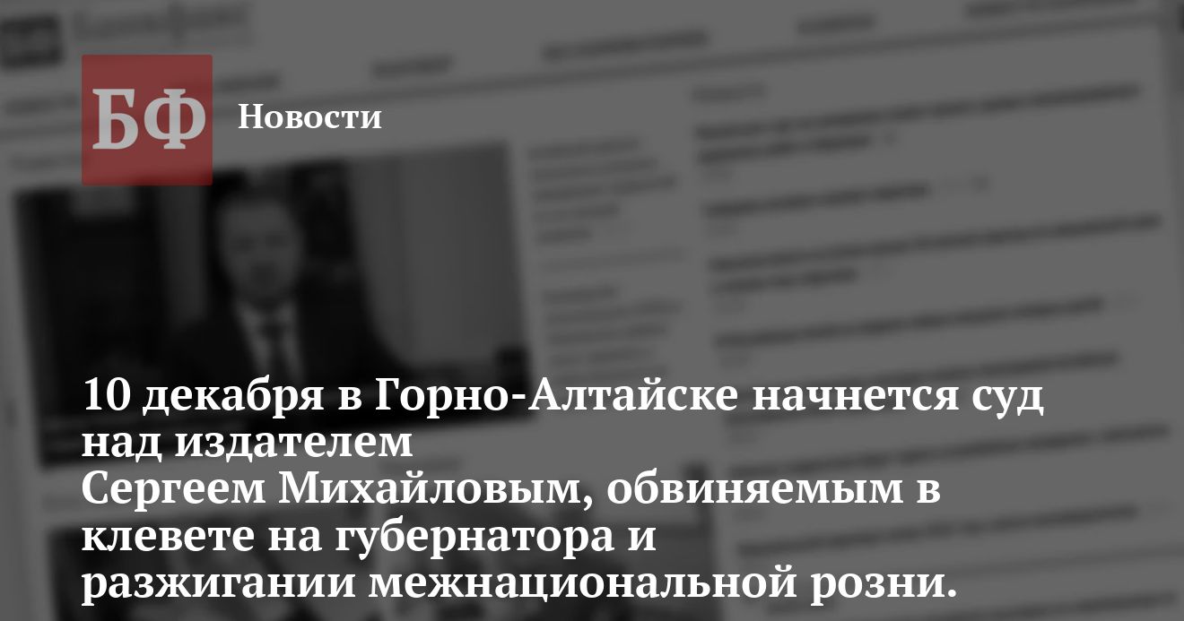 Алтай Сергея Михайлова, обвиняемого в клевете на губернатора и разжигании межнациональной розни, назначены на 10 декабря,
