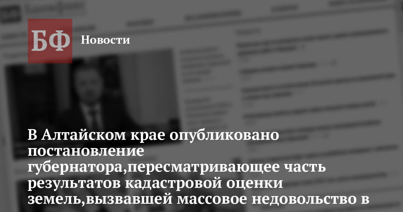 Главное управлений имущественных отношений администрации Алтайского края на своем сайте опубликовало постановление губернатора, недавно пересмотревшего часть результатов утвержденной им в декабре 2009 г. кадастровой оценки земель региона. Тогда результаты организованной властями переоценки кадастровой стоимости земель вызвали существенное общественное недовольство в крае — чиновников обвиняли в многократном завышении стоимости земель с целью повысить поступления от арендных и фискальных платежей.