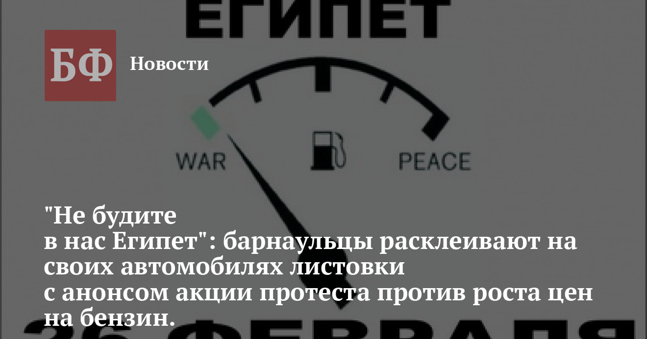цен на бензин под лозунгом «Не будите в нас Египет». Такие же листовки распространяются в сети Интернет. Так, блоггер rusik78