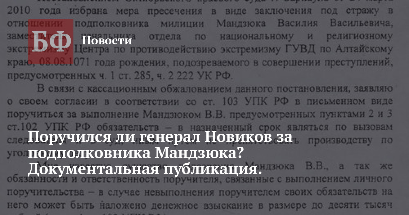Однако вскоре подполковник Мандзюк был отпущен на свободу под подписку о невыезде. Как теперь стало ясно, поручителем за него выступил генерал Новиков.
