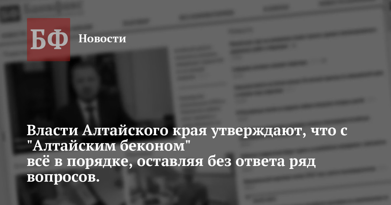 «Что касается „Алтайского бекона“, то я понимаю, что вопрос