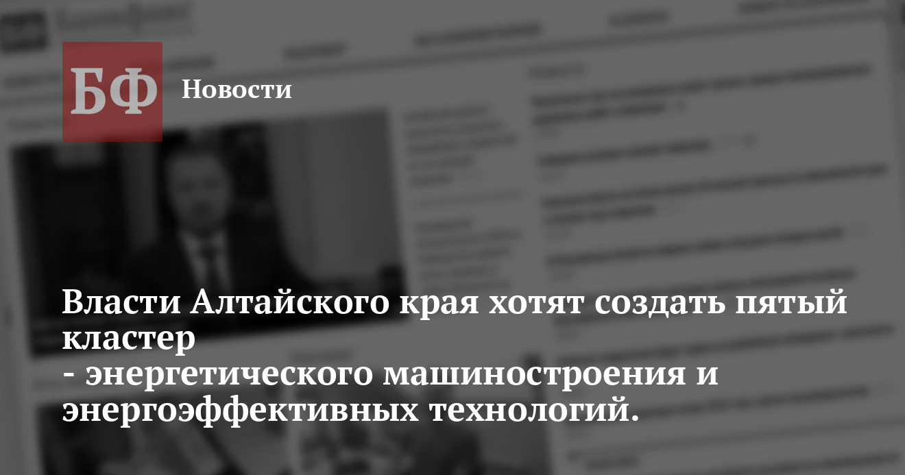 В администрации Алтайского края задумались над созданием в регионе пятого кластера — энергетического машиностроения и энергоэффективных технологий. Об этом стало известно на учредительном совещании, прошедшем 2 июня под председательством