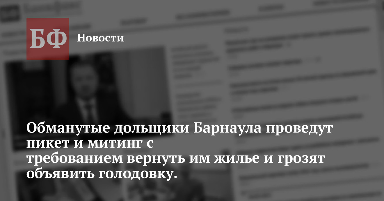 Пикет обманутых дольщиков пройдет в Барнауле 8 июня в 12:00 на пл. Советов возле нулевого километра. В этот же день у КРК «Мир»