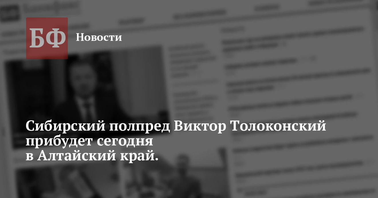 Г-н Толоконский прибудет в Барнаул 8 июня во второй половине дня.