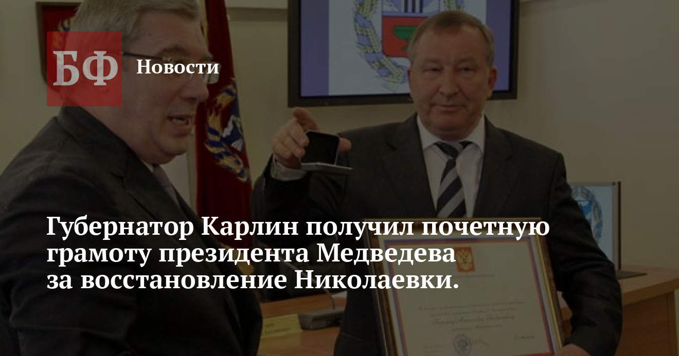 Имеющую статус госнаграды грамоту Толоконский вручил Карлину на экстренно проведенном без предварительных объявлений вечером 8 июня заседании Совета крайадминистрации. По словам Виктора
