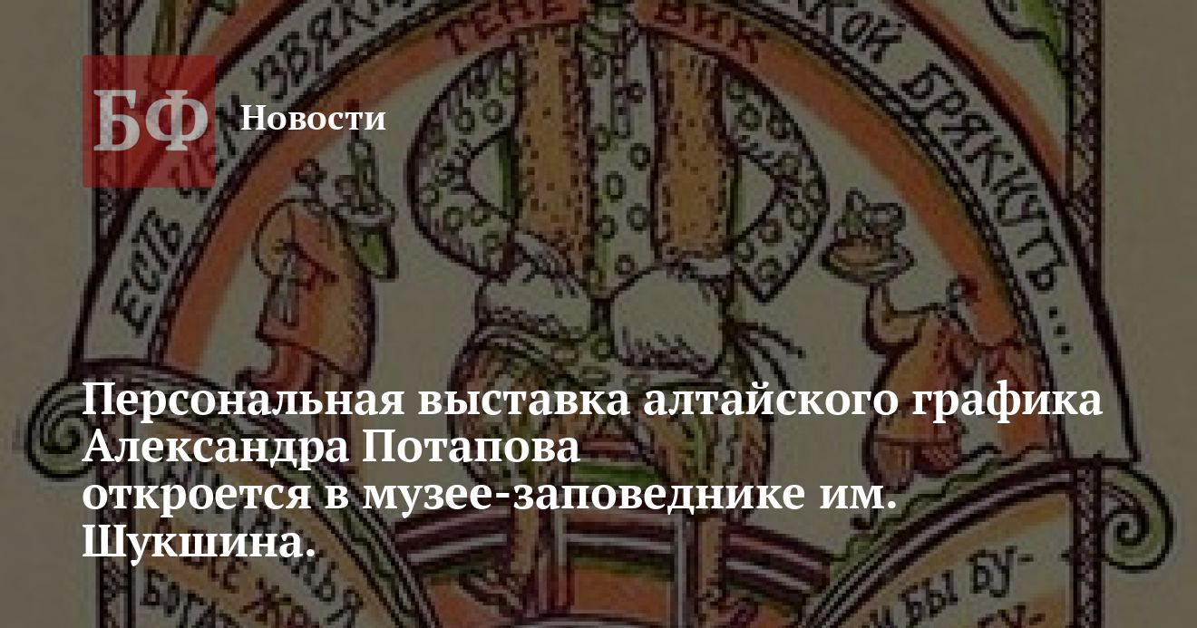 В музее им. Шукшина работы художника выставляются второй раз, впервые персональная выставка Александра Потапова состоялась в 1995 году. Тогда художник подарил в фонды музея пять цветных линогравюр: «Про то, как Шукшин ходил в баньку», «Небылица в лицах», «До третьих петухов», «Зелёные мужики», «А скажи Василий…». Эти и другие работы будут представлены на предстоящей выставке.