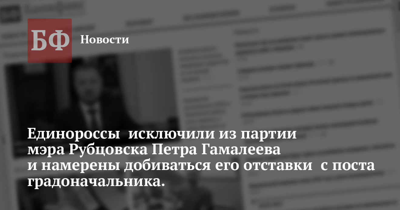 решение об исключении из партии мэра Рубцовска, третьего по величине города в крае, Петра Гамалеева. Об этом 22 июля сообщает
