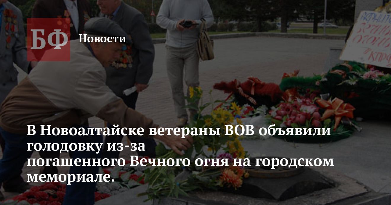 Новоалтайские ветераны ВОВ предложили провести всероссийскую акцию в поддержку возвращения Вечного огня и призвали всех, кто их услышит и увидит, переслать по адресу: г. Москва, Кремль, Общественная приемная лидера партии «Единая Россия» Путина В.В. по 10 — 20 рублей в конвертах на восстановление Вечного огня.