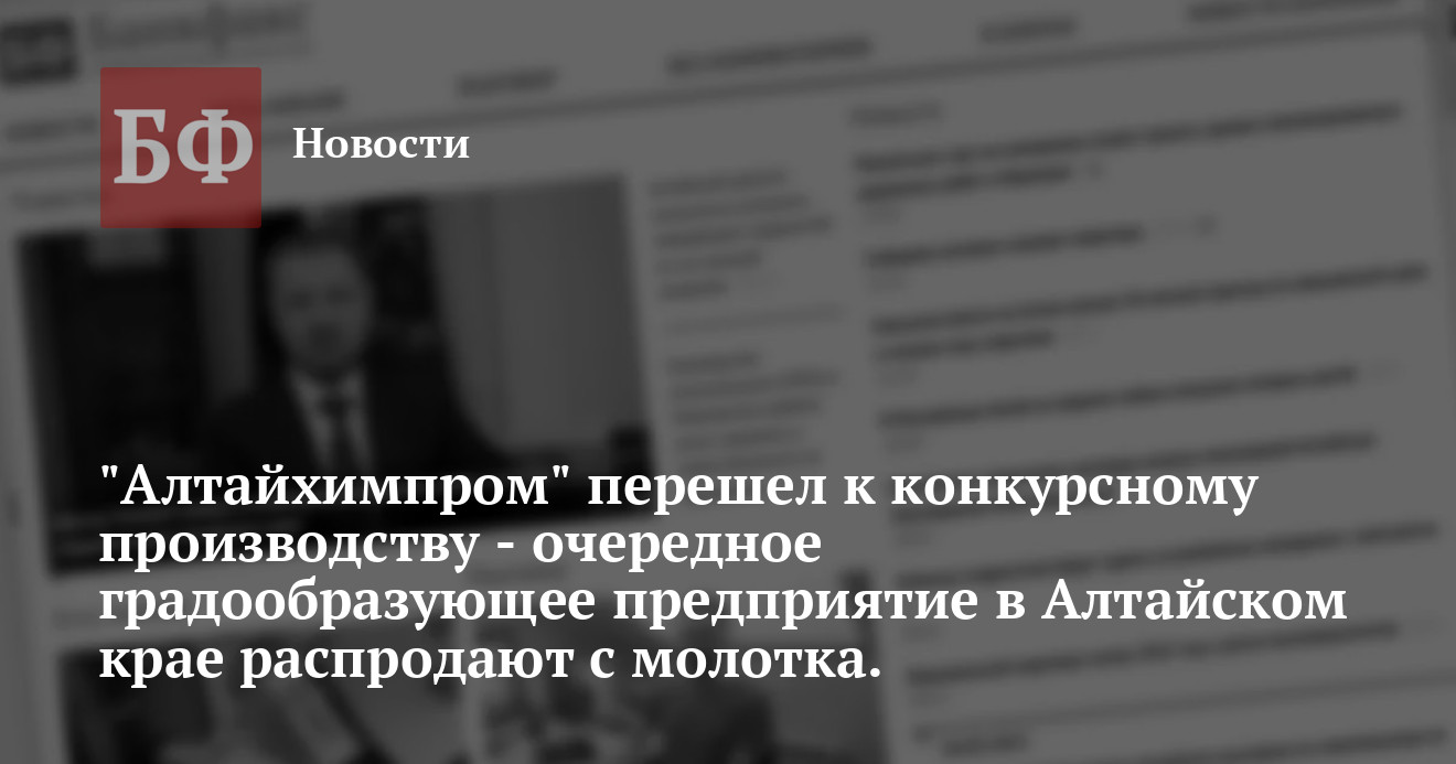 управление в ОАО «Алтайхимпром» и объявил о начале конкурсного