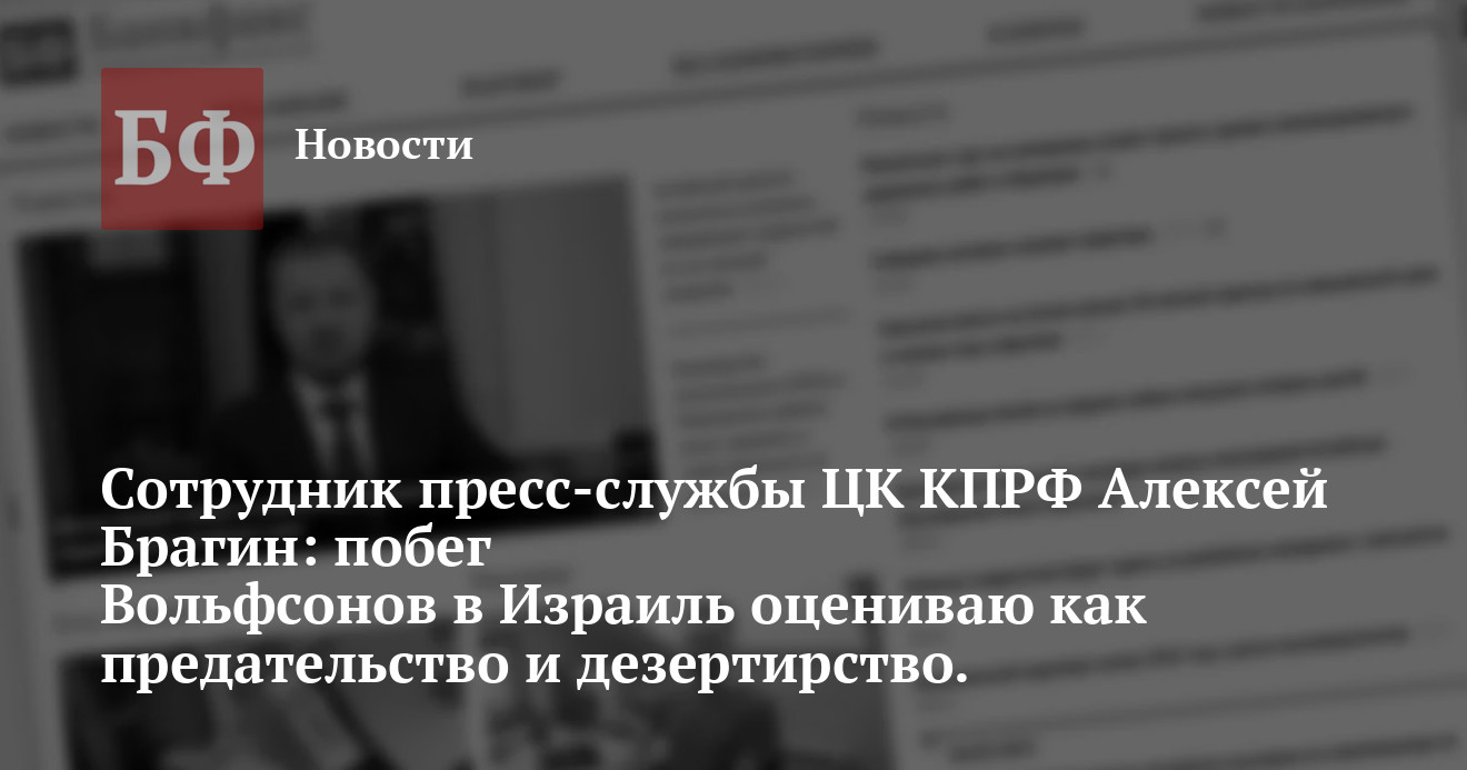 — Вольфсоны теперь уже не члены КПРФ, поэтому могу сказать о них открыто все, что думаю. Их побег в Израиль оцениваю как предательство и дезертирство. Оправданий этому поступку не может быть. Личные проблемы поставили выше общественных. Бросили партию в ответственный момент, накануне выборов в Государственную Думу и президентских выборов. Но я не удивлен их поступку. И раньше этой парочке не доверял, это были «коммунисты» из разряда троцких, бухариных, рыковых и зиновьевых. Считаю, что для нашей партии это потеря невелика.